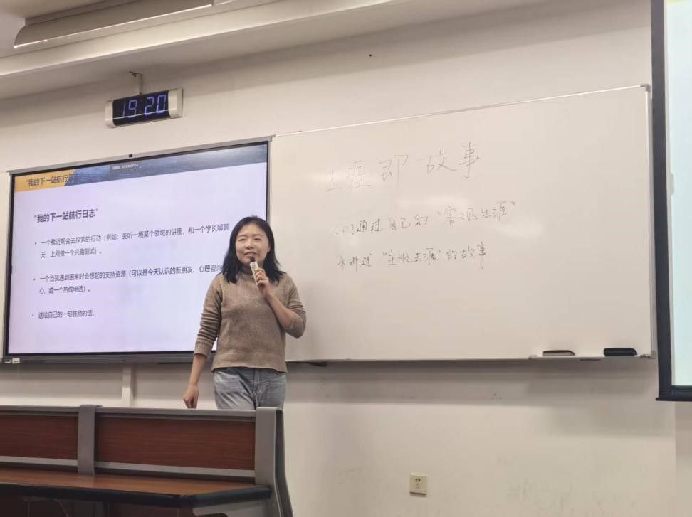 为了进一步激发大家的想象力和创造力,高老师还带领同学们体验了“正念”——生涯幻游,并引导大家在安静放松的状态下描绘未来的工作与生活图景。此外,高老师还特别设置了“识别心里风暴,做彼此的支持灯塔”环节,介绍了常见心理危机的识别方式及学校心理支持资源,增强同学们的互助意识与求助能力。
