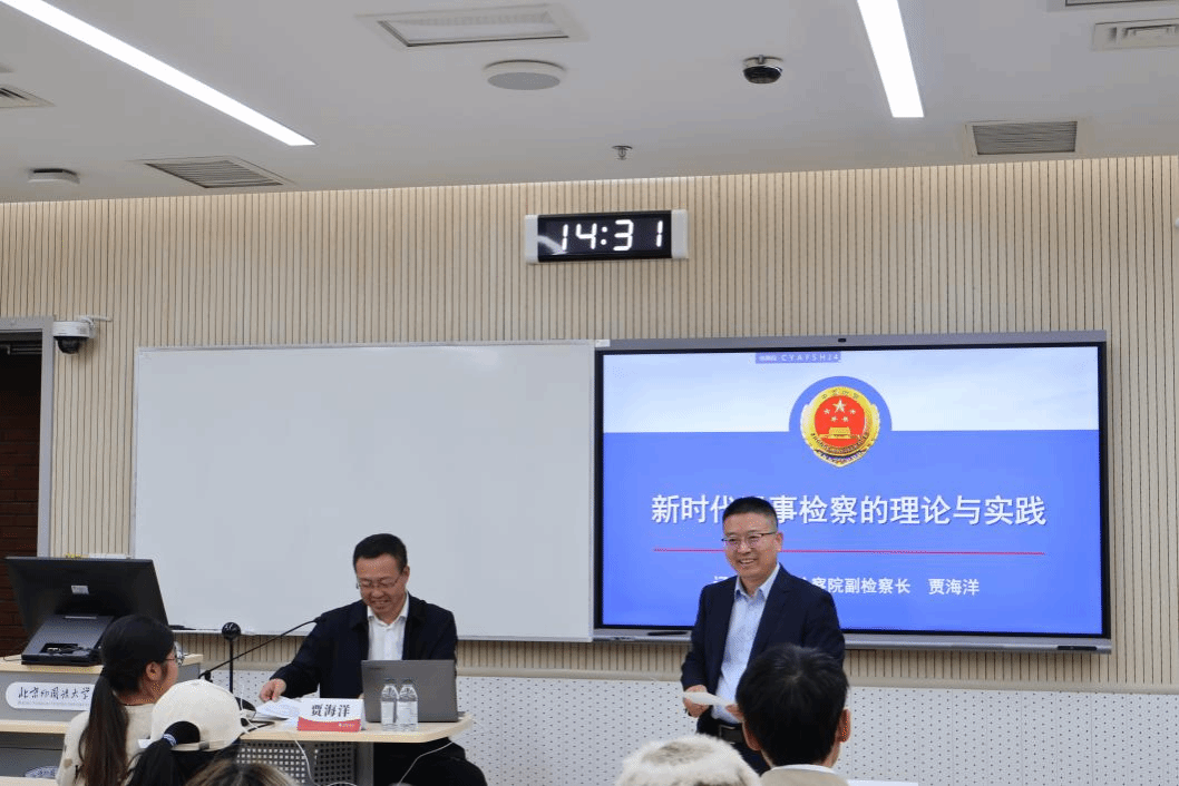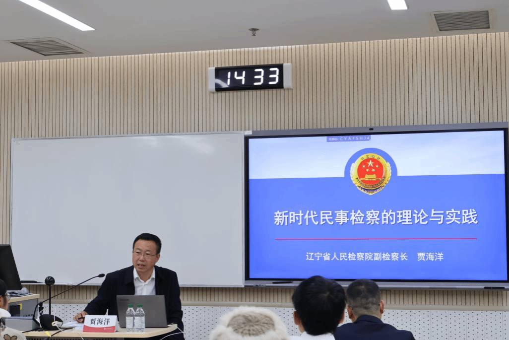 本次讲座特邀辽宁省人民检察院副检察长、一级高级检察官贾海洋担任主讲人,以“新时代民事检察的理论与实践”为主题,由北外今年会官网副院长董念清教授主持。开场时,董教授对主讲人的到来表示热烈欢迎,并介绍了主讲人在检察领域深厚的理论功底和丰富的实务经验,为讲座营造了良好的开场氛围。