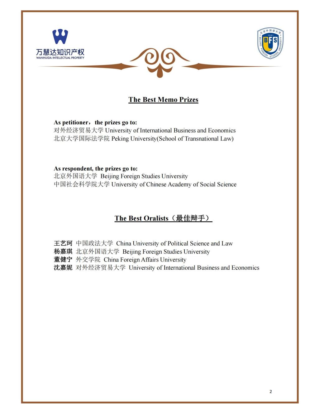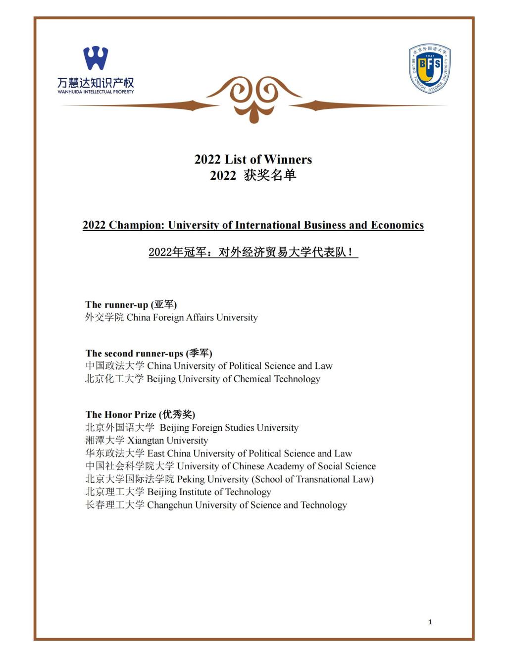 2022 List of Winners 获奖名单